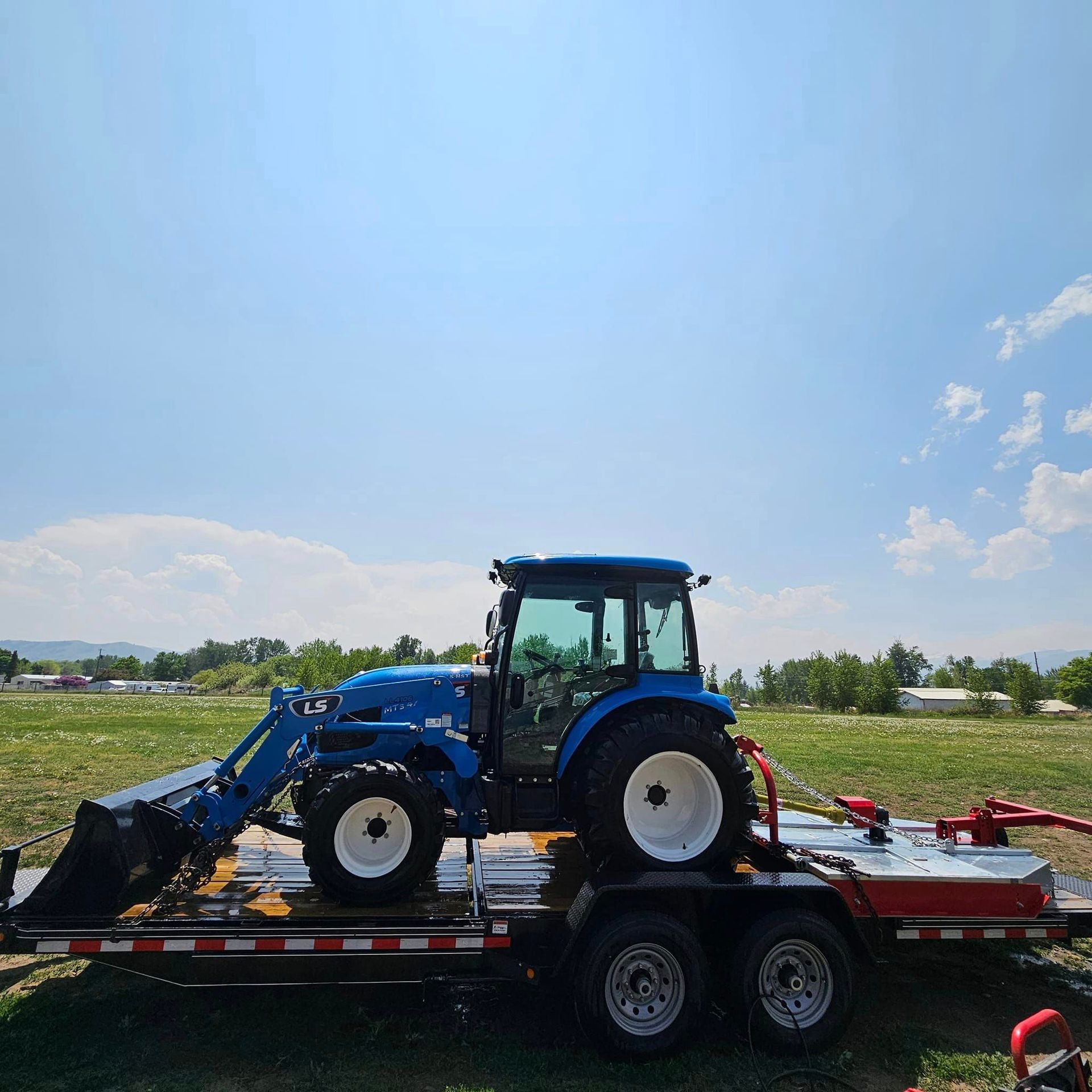 Brush hogging is a common way of removing overgrowth in which a power unit (i.e., tractor) uses a mowing implement attached to the tractor's three-point hitch to chop and mulch grasses and brush. The brush hog, which is powered by the drive machine's PTO (power-take-off), removes excessive grass, saplings, and roughage using a set of big, heavy, hinged blades. As the tractor drives forward, the material is cut, mulched, and allowed to exit out the back.